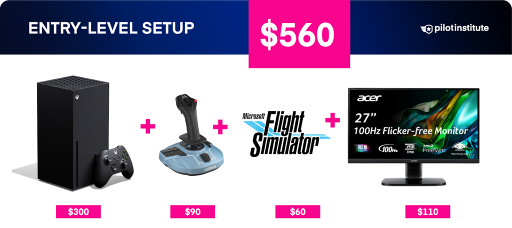 Xbox S ($300) + Thrustmaster TCA Sidestick ($90) + MSFS ($60) + 27″ Acer Monitor ($110) = $560